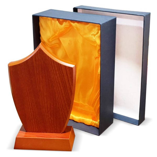 Galvano de Madera con placa de sublimación dorada, doble bisagra.